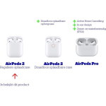 Het is belangrijk om te weten dat Apple op dit moment twee varianten van de AirPods 2 heeft. Wij bieden de variant met de reguliere oplaadcase aan, wat betekent dat de oplaadcase niet draadloos kan worden opgeladen. Deze versie maakt gebruik van de meegeleverde lightning oplaadkabel. Daarnaast is er ook de variant met de draadloos oplaadbare case, waarbij zowel de AirPods als de oplaadcase draadloos kunnen worden opgeladen met behulp van een QI-charger. Let erop dat je momenteel naar de AirPods 2 met de reguliere oplaadcase kijkt.