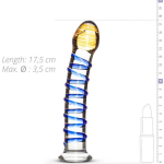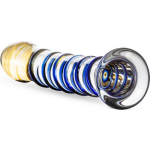 Een bijzondere glazen dildo voor intense sensatiesMet deze glazen dildo haal je absoluut iets bijzonders in huis. De dildo is gemaakt van transparant glas en is voorzien van opvallende blauwe details op de schacht en gele streepjes op de top. Dit zorgt niet alleen voor een esthetisch aantrekkelijk ontwerp, maar ook voor een visuele stimulatie tijdens het gebruik.Ultieme sensatie dankzij de blauwe ribbelsWat deze glazen dil... lees meer over dit product
