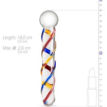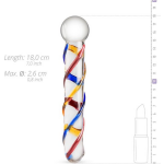 Vul je speeltjescollectie aan met deze prachtige glazen dildoMaak kennis met de nieuwste toevoeging aan jouw collectie: de glazen dildo van Gildo. Deze verleidelijke dildo is gemaakt van transparant glas en valt op door de kleurrijke strepen die elegant rond de schacht lopen. Niet alleen zorgen deze strepen voor een schitterend visueel effect, maar ze bieden ook extra textuur om jou bij elke stoot intens te stimuleren. Laat j... lees meer over dit product