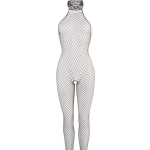 Stap in de wereld van luxe en sensualiteit met onze zwarte visnet catsuit. Dankzij het modieuze haltermodel en de prachtige halsband van zacht zwart kant straal je direct vrouwelijkheid uit. Deze catsuit loopt elegante door tot en met de voeten en is voorzien van een spannend open kruisje. De elastische pasvorm zorgt niet alleen voor een verleidelijke look, maar ook voor optimaal draagcomfort in elke situatie.