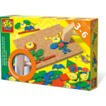 Inclusief een kurkbord, houten hamer, ongeveer 40 spijkers, 30 houten vormen en een blad met enkele voorbeelden, biedt deze set alles wat kinderen nodig hebben om aan de slag te gaan. Het geheel is verpakt in een handige windowbox.