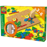 Met de SES Hamertje Tik set kunnen kinderen prachtige fantasiefiguren maken door de vormpjes op het kurkbord vast te maken met het hamertje en de spijkertjes. De set bevat allerlei leuke vormpjes in felle kleuren, waarmee kinderen hun creativiteit kunnen uiten.