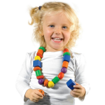 Met de Ses Ik Leer Rijgen set leer je op een speelse manier hoe je grote kralen aan een koord kunt rijgen. Hoewel het soms een beetje zoeken en priegelen kan zijn, is het resultaat des te leuker! Kies uit verschillende kleuren en vormen kralen om je eigen ketting te maken en maak hem helemaal af.