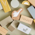 Deze houten blokken in ton zijn onmisbaar voor eindeloos bouwplezier! In de ton zitten maar liefst 50 houten blokjes met prachtige prints van Little Goose en zijn vriendjes op het platteland. Met deze blokken kun je allerlei leuke figuren en torens bouwen. De verschillende vormen en kleuren zorgen voor eindeloze mogelijkheden en stimuleren de creativiteit van je kind.