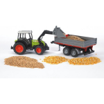 Verzet bergen werk op je boerderij met de Bruder tractor Claas Nectis 267 F en aanhanger. Dankzij de handige frontlader op de tractor kan je de aanhanger gemakkelijk vullen. Vergeet niet de aanhanger op zijn steunpoot te zetten, zodat deze stevig blijft staan. Met een simpele achteruitbeweging koppel je de tractor en de aanhanger aan elkaar. Klap de steunpoot omhoog en rijdt naar je bestemming met de lading veilig vastgezet.
