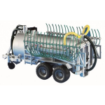 Met de Bruder aanhanger giertank met sproeier kun je gemakkelijk de gewassen op je boerderij bemesten. Vul de giertank met water en sluit hem af met de deksel. Bevestig de giertank aan je tractor (niet inbegrepen) en rijd het land op. Zodra je op het land bent, open je de afvoerklep en de mest stroomt uit de giertank en wordt gelijkmatig verspreid.