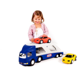 Deze autotransporter biedt niet alleen ruimte aan twee sportwagens, maar kan ook losgekoppeld worden van de truck, waardoor er nieuwe speelmogelijkheden ontstaan. De bovenkant van de oplegger biedt zelfs nog extra ruimte voor een sportwagen. Zo kunnen kinderen eindeloos variëren en hun eigen avonturen bedenken met deze veelzijdige autotransporter!