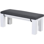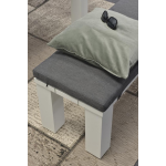 Het bankje is volledig gemaakt van aluminium met een stevige poedercoating, die zorgt voor de nodige bescherming. Het zitkussen heeft een waterafstotende coating, waardoor een korte regenbui geen probleem is. Voor langdurige opslag wordt aanbevolen het kussen schoon en droog op te bergen. Met afmetingen van 115,5 x 43 x 40 centimeter en een zithoogte van 45 centimeter, biedt de bank voldoende comfort. Het zitkussen heeft een dikte van 5 centimeter.