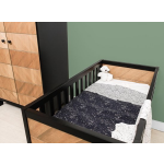 Het Bopita Job Babybed Vintage Honey – 60x120 cm is een hoogwaardig grenen meubelstuk met een vleugje karakter. Het hoofd- en voeteneinde zijn voorzien van een elegant visgraatmotief, terwijl de rest van het bed is afgewerkt in een stijlvolle zwarte kleur. Met een verstelbare bodem zorgt dit babybedje voor extra veiligheid naarmate je kleintje groeit. Elk meubel is uniek door de natuurlijke houtstructuur, waardoor het een unieke uitstraling heeft.