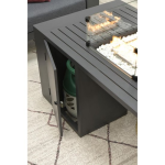 De Sines tuinhaard werkt op gas en wordt geleverd met een handige aluminium behuizing waarin je de gasfles veilig kunt opbergen. De vuurtafel is eenvoudig te bedienen met de draaiknop aan de onderkant. Voor extra veiligheid wordt de glazen omheining standaard meegeleverd. De RVS-brander is mooi afgewerkt met meegeleverde steentjes. Daarnaast krijg je ook de haardblokken, gasdrukregelaar, gasslang en een bijpassende beschermhoes bij de haard.