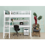 Het Nordic hoogslaper XL bed biedt niet alleen een comfortabele slaapplek, maar maakt ook optimaal gebruik van de ruimte eronder. Optioneel kan het bureaublad Nordic geplaatst worden, waardoor er een praktische werkplek gecreëerd wordt. Dankzij de voorgeboorde gaten is het ombouwen van het bed eenvoudig en worden er bijpassende plastic afdekdopjes meegeleverd in de kleur van het bed om de gaten te dichten.