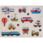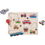Engelhart Houten knopjes/noppen speelgoed puzzel voertuigen thema 30 x 22 cm - Educatief speelgoed voor kinderen
