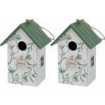 2x Vogelhuisje/nestkastjes wit/groen hout 22 cm - Vogelhuisjes tuindecoraties