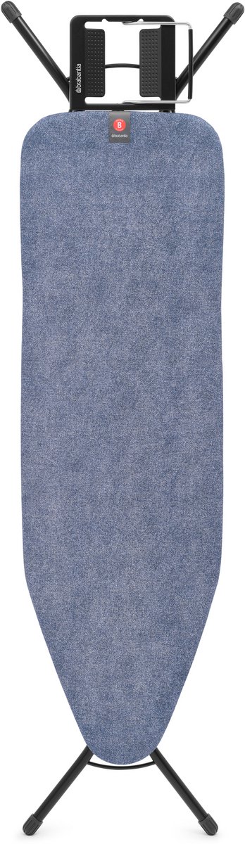 Brabantia Strijkplank B 124 x 38 cm Denim Blue met strijkijzerhouder - Zwart
