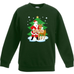 Laat de feestelijke geest stralen met deze prachtige groene kersttrui voor jongens en meisjes. De trui is bedrukt met een levendige afbeelding van een vrolijke kerstman en een schattige rendier Rudolf, naast een sfeervolle kerstboom en de tekst "Merry Christmas".