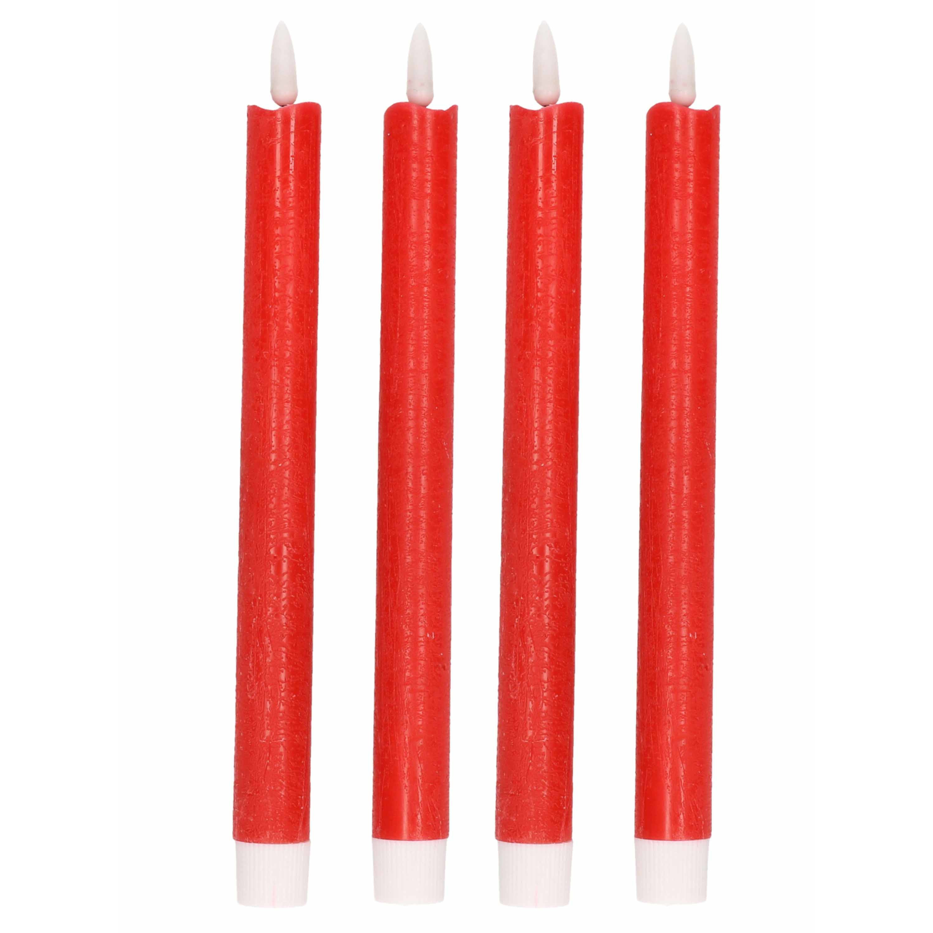 Bellatio Decorations 4x Rode Led kaarsen/dinerkaarsen 25,5 cm - Kerst diner tafeldecoratie - Led kaarsen - Rood