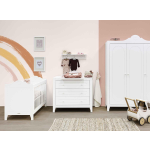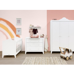 De kenmerkende afgeronde groeven op de fronten van de deuren geven deze kast een unieke uitstraling die past bij de rest van de Bopita Evi-serie. Het softclosing mechanisme van de deuren zorgt ervoor dat ze gedempt sluiten, waardoor er geen harde geluiden zijn die uw baby zouden kunnen storen.