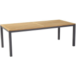 De tafel heeft een afmeting van 220 x 100 cm en is verkrijgbaar in de kleur antraciet. Het teakhouten blad geeft de tafel niet alleen een natuurlijke look, maar is ook zeer duurzaam en weerbestendig. Daarnaast is het blad voorzien van een FSC keurmerk, wat betekent dat het teakhout op een verantwoorde en duurzame manier is verkregen.
