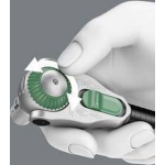 De ratelkop kan vrij gedraaid worden en kan vergrendeld worden in elke positie via de handige schuifknoppen aan beide zijden. Hierdoor kun je zelfs in zeer nauwe of moeilijk bereikbare situaties probleemloos werken met veel vrije ruimte voor je hand.