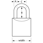 Masterlock 50mm thick solid brass body - 30mm hardened steel shackle, 8mm diam. - - Geel