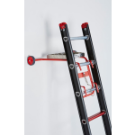 De muurafhouder met toprollen en bakje zorgt voor een betere bereikbaarheid op de ladder. Door meer afstand van de gevel te hebben, kun je klussen gemakkelijker en veiliger uitvoeren. Dankzij de toprollen is het uitschuiven van je ladder een fluitje van een cent. Bovendien biedt het bakje een handige plek om je gereedschap binnen handbereik te hebben, wat zorgt voor een efficiënte en veilige werkomgeving.