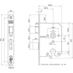 De nachtschoot van het slot heeft een lengte van 20mm en de tuimelaar heeft een afmeting van 8mm. Het slot wordt geleverd met een sluitplaat P 1279/17 met een afgeronde vorm. Daarnaast is er de mogelijkheid om de bijpassende sluitkom VS 1200 apart bij te bestellen.