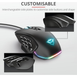 Deze muis wordt geleverd met vier magnetische zijplaten, waardoor je de muis naar jouw persoonlijke voorkeur kunt aanpassen. Kies uit verschillende zijknoppen en plaatvormen om je eigen, unieke wapen te creëren. De linkerzijplaten hebben respectievelijk 3 en 9 programmeerbare knoppen, geschikt voor elke game. De rechterzijplaten hebben verschillende vormen, zodat je een model kunt kiezen dat perfect in je hand ligt.