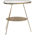 Maak kennis met de moderne koperkleurige bijzettafel van het gerenommeerde merk Clayre & Eef. Met zijn stijlvolle ontwerp van ijzer en glas is deze bijzettafel een echte eyecatcher in elke ruimte. Met een afmeting van 61x37x70 cm past hij perfect naast je bank, bed of stoel.