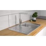De CHICAGO kraan is uitgerust met keramische schijven en een verwisselbare 25 mm-cartouche. Deze materialen zorgen niet alleen voor een duurzame werking van de kraan, maar ook voor een geluidsarme gebruikservaring. Je kunt dus genieten van je keukenactiviteiten zonder gestoord te worden door vervelend geluid.Hoogwaardige materialen en flexibele aansluitslangen