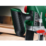 Dankzij het uitstekende ergonomische design met softgrip ligt de bovenfrees comfortabel in de hand, wat zorgt voor verminderde vermoeidheid en meer precisie tijdens het werken. De blokkering van de uitgaande as zorgt voor extra veiligheid, terwijl de transparante spaanbeschermkap je beschermt tegen rondvliegende spanen.