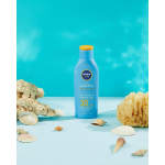 De NIVEA SUN Protect & Bronze Zonnemelk heeft een aangename textuur en laat zich makkelijk uitsmeren op de huid. Hierdoor kun je de zonnemelk gelijkmatig aanbrengen en ben je optimaal beschermd. De formule is waterresistent, waardoor je ook tijdens het zwemmen of transpireren beschermd blijft. Het is de ideale zonnemelk voor een dagje strand, het zwembad of andere buitenactiviteiten.