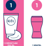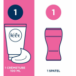 De Verpakking bevat een creme tube van 100ml en een handige spatel voor eenvoudig gebruik. Ontdek nu de Minima™ Ontharingscrème van Veet en ervaar de voordelen van minder chemische ingrediënten voor een zijdezachte huid met een frisse parfum.