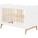 Het Bopita Paris Ledikant Wit / Eiken - 60x120 cm is een tijdloos en stijlvol bed dat perfect past in elke kinderkamer. Met zijn zichtbare diagonale groeven en eiken accenten straalt dit ledikant elegantie en kwaliteit uit.