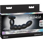 Maak dubbele penetratie simpeler en aangenamerMet de Fantasy C-Ringz Posable Partner Double Penetrator wordt dubbele penetratie een eitje. Jij en je partner kunnen beide genieten zonder dat jullie speeltjes moeten vasthouden. Deze dubbele penetrator is voorzien van een siliconen cockring die heerlijk zacht aanvoelt, stretchy is en zelfs een bullet vibrator bevat. Daarnaast is er een zwarte anaal dildo die je zelf kunt buigen ... lees meer over dit product