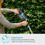 Dankzij de ErgoLine-handgreep met geïntegreerde schakelaar ligt de heggenschaar altijd comfortabel in de hand, ongeacht je werkhouding. Het 50 centimeter lange blad zorgt voor een optimale balans tussen precisie en efficiëntie. Zelfs bij het snoeien vlak bij de grond of langs muren beschermt het lemmet de messen tegen beschadiging. De perfect ontworpen bladgeometrie zorgt altijd voor een zuivere snede, zonder onderbrekingen. Met de ComfortCut 50/18V P4A wordt heggen snoeien geen uitputtende taak, maar een klus die in een mum van tijd geklaard is, met verbluffende resultaten.