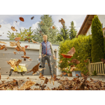 Dankzij het lage gewicht is het werken met de bladblazer uiterst comfortabel en gemakkelijk. Zelfs over de volledige maximale looptijd van 13 tot 23 minuten, afhankelijk van het ingestelde vermogen, zul je geen vermoeidheid ervaren in je polsen en armen. De blazer is uitstekend uitgebalanceerd en de ergonomie van het product is van hoog niveau.