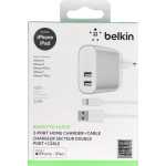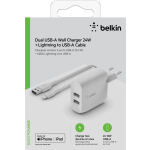 Belkin Dual Wall Charger 24 Watt met PVC USB-A-naar-Lightning-kabel 1 Meter - Wit