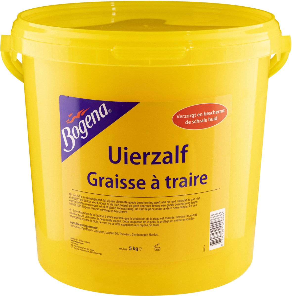 Bogena Uierzalf is de bekendste uiercrème van Nederland en biedt de beste bescherming voor zowel u als uw runderen. Deze zalf is speciaal ontwikkeld om uw schrale huid weer soepel te maken en verzorgt tevens wondjes, kloven en schaafplekken. Dankzij de speciale formule is de zalf bestand tegen vocht, waardoor deze langdurige bescherming biedt.