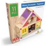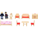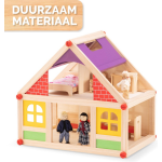 MaxiMondo Marionette Wooden Toys - Houten Poppenhuis Incl. Meubels En Poppetjes - 11-delig - Geel