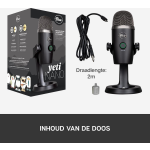 Pakketinhoud: Yeti Nano USB-microfoon met desktopstandaard en USB-kabel.
