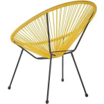 Trendy Balkonset in GeelCreëer een vrolijke en trendy sfeer op je balkon met deze balkonset in geel. De set bestaat uit een kleine ronde tafel en twee comfortabele draadstoelen. De stoelen zijn gemaakt van stevig en onderhoudsvriendelijk geel kunststof rotan, gecombineerd met een stabiel zwart stalen frame. Comfort staat voorop bij deze set. De stoelen hebben een lage en diepe zitvlak, waardoor je urenlang kunt genieten van... lees meer over dit product