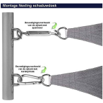 De Coolfit schaduwdoeken worden geleverd inclusief bevestigingsmaterialen, waaronder roestvrij stalen haken, oogbouten en karabijnhaken. Hiermee kunt u het doek stevig en veilig bevestigen. Het doek is ook schimmelwerend en gemakkelijk schoon te maken, waardoor het altijd in topconditie blijft.