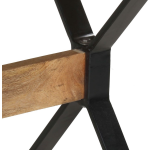 De sterke gepoedercoat stalen poten geven niet alleen een industriële uitstraling aan de tafel, maar zorgen ook voor extra stabiliteit. De combinatie van het ruwe mangohout en het zwarte stalen frame zorgt voor een stijlvolle en stevige constructie.