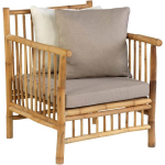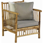Bamboe tuinmeubelen geven direct een vakantiegevoel. De loungestoel is gemaakt van bamboe, een sterk en flexibel natuurproduct dat een hoog duurzaamheidsniveau biedt. Hoewel bamboe licht van kleur is, kan het reageren op de omgeving en na verloop van tijd vergrijzen of beschimmelen. Dit heeft echter geen invloed op de constructie, kwaliteit of levensduur van het meubel. De kussens zijn voorzien van een sterke buitenstof en de vulling is gemaakt van standaard schuim. Houd er rekening mee dat de kussens niet buiten kunnen blijven liggen en berg ze direct na gebruik op.