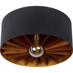 Voor een unieke en speelse lichtinval op materialen hoef je niet verder te zoeken dan de Zidane plafonnière. Het middelpunt van deze prachtige lamp wordt gevormd door de perfect geplaatste lichtbron tussen de houten plaatjes. De warmte en gezelligheid worden versterkt door de binnenkant van de metalen kap in messing, terwijl het zwarte omhulsel het geheel compleet maakt.
