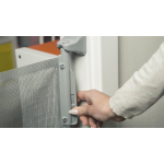 Het TULIA hekje is voorzien van een ClipGuard-blokkade, een speciaal mechanisme met een clip waarmee het rolgordijn veilig kan worden opgerold en ontgrendeld. Het dubbele kinderslot zorgt ervoor dat het hekje niet door je kind kan worden geopend, en door het ontbreken van een drempel is er geen risico op struikelen.