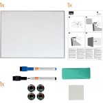 Om je meteen op weg te helpen, wordt het magnetische whiteboard geleverd met een set van 2 whiteboardmarkers, 4 whiteboard magneten, zelfklevende montagepads en een compacte whiteboard wisser. De markers en magneten zijn verkrijgbaar in verschillende kleuren, zodat je kunt kiezen wat het beste bij jouw stijl en voorkeur past.