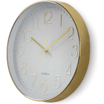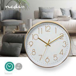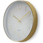 De ronde wandklok van Nedis is een prachtige combinatie van eenvoud, stijl en goed leesbare grote cijfers. Met zijn gouden kenmerken tegen een witte achtergrond voegt deze klok een vleugje luxe toe aan elke ruimte.