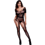 Baci - Jarretel Catsuit Met Korte Mouwtjes - Zwart