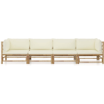 Vidaxl 4-delige Loungeset Met Crèmewitte Kussens Bamboe - Bruin